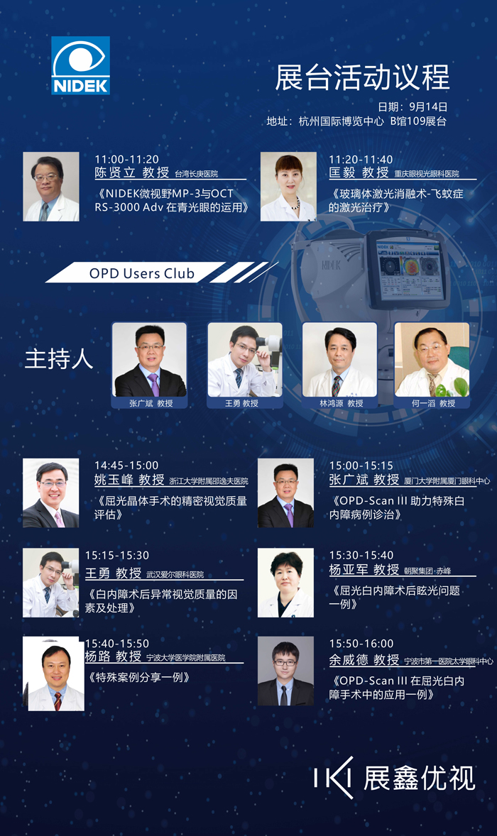 2018年9月在福州的第二十三次全國眼科學(xué)術(shù)大會(huì)(CCOS)上,尼德克將重點(diǎn)展示眼科最新產(chǎn)品,誠邀各位眼科同道蒞臨指導(dǎo)。同時(shí),在 CCOS期間內(nèi),尼德克會(huì)舉辦衛(wèi)星會(huì),展臺(tái)大講堂及系列展位活動(dòng),竭誠歡迎各位眼科同道參與學(xué)習(xí)討論。