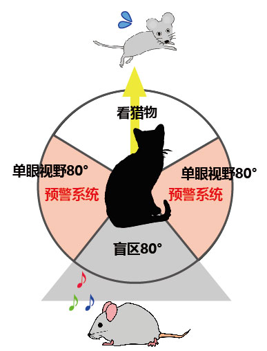 另一方面,“單眼視野”左右側各只有80度用來單眼觀望周圍情況,頭部后方80度稱之為“盲區(qū)”,幾乎什么也看不見。