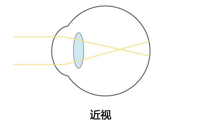 近視是指眼睛在晶狀體未調節的“無調節狀態”時,只能將遠處來的光線在視網膜之前形成焦點。在矯正視力時,使用凹透鏡進行矯正。雖然不太清楚導致近視的具體原因,但是我們認為在以下情況下會導致近視。