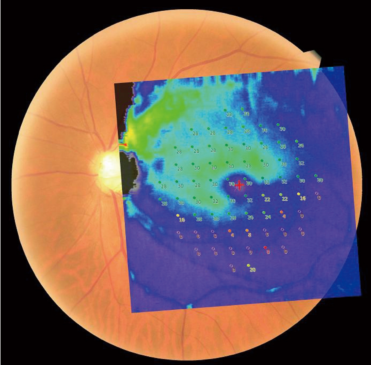 可通過將OCT的各種形態學檢查影像與NIDEK微視野視野計MP-3采集的視功能檢查數據疊加成各種功能性多模影像。