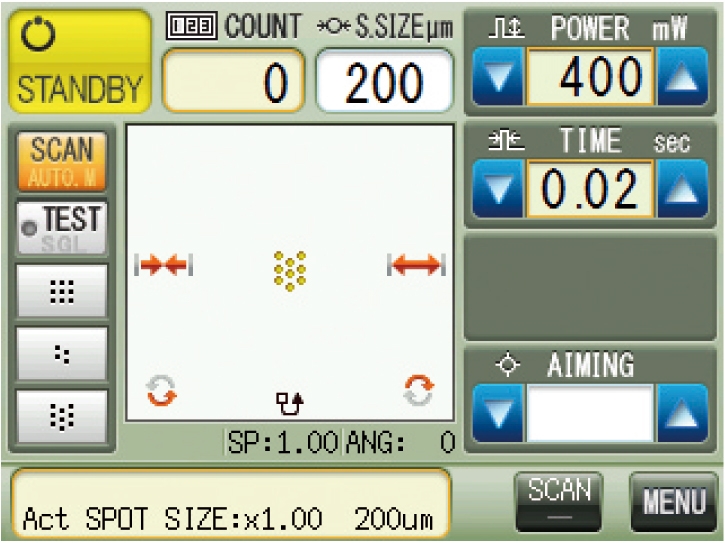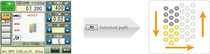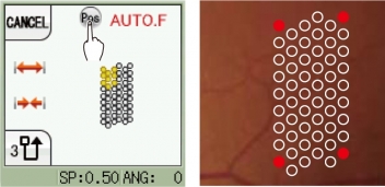 具有自動(dòng)步進(jìn)功能的重復(fù)模板通過連續(xù)踩下腳踏開關(guān),按照預(yù)先設(shè)置的路線,在區(qū)域內(nèi)連續(xù)進(jìn)行光凝。
