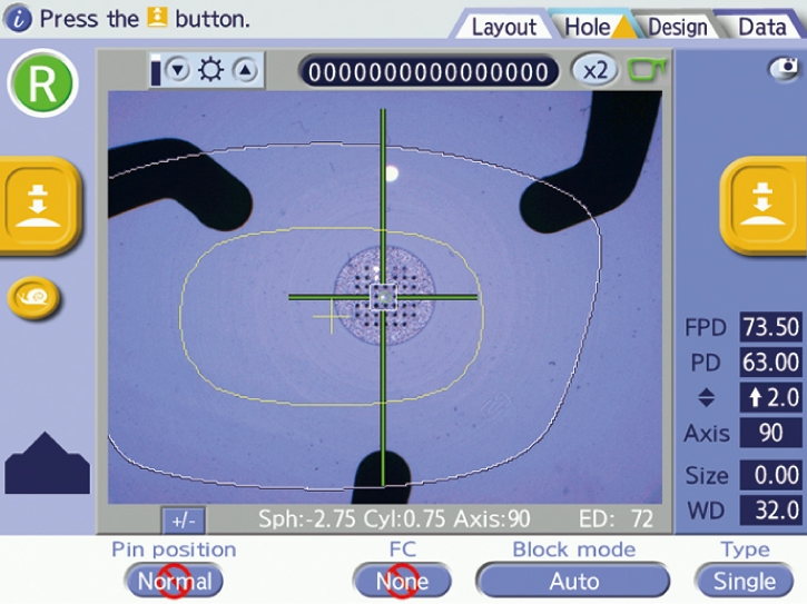 利用自動鏡片測量(ALM)功能,操作員能夠輕松定位單光鏡片,無需焦度計打點。提供四種測量方法,可根據鏡片類型選擇適當方法。ICE-1500采用有特色的的創新設計,實現快速、精確的自動中心定位。