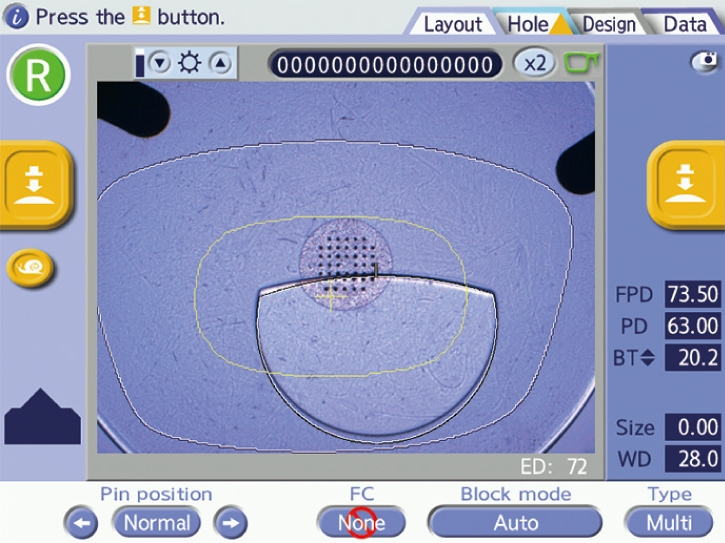 片形拍照功能提供精確的片形數字化和無框鏡片孔位檢測。此外,還能夠測量局部階梯邊和式樣切割片形。